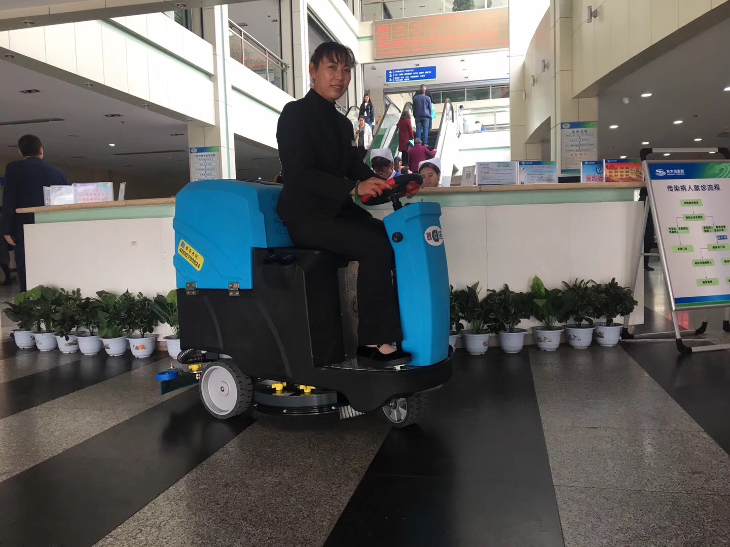 醫(yī)院大廳用駕駛式洗地機清潔更高效